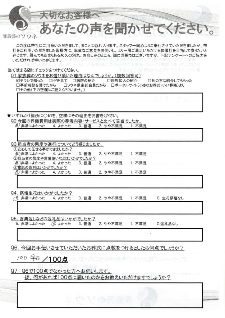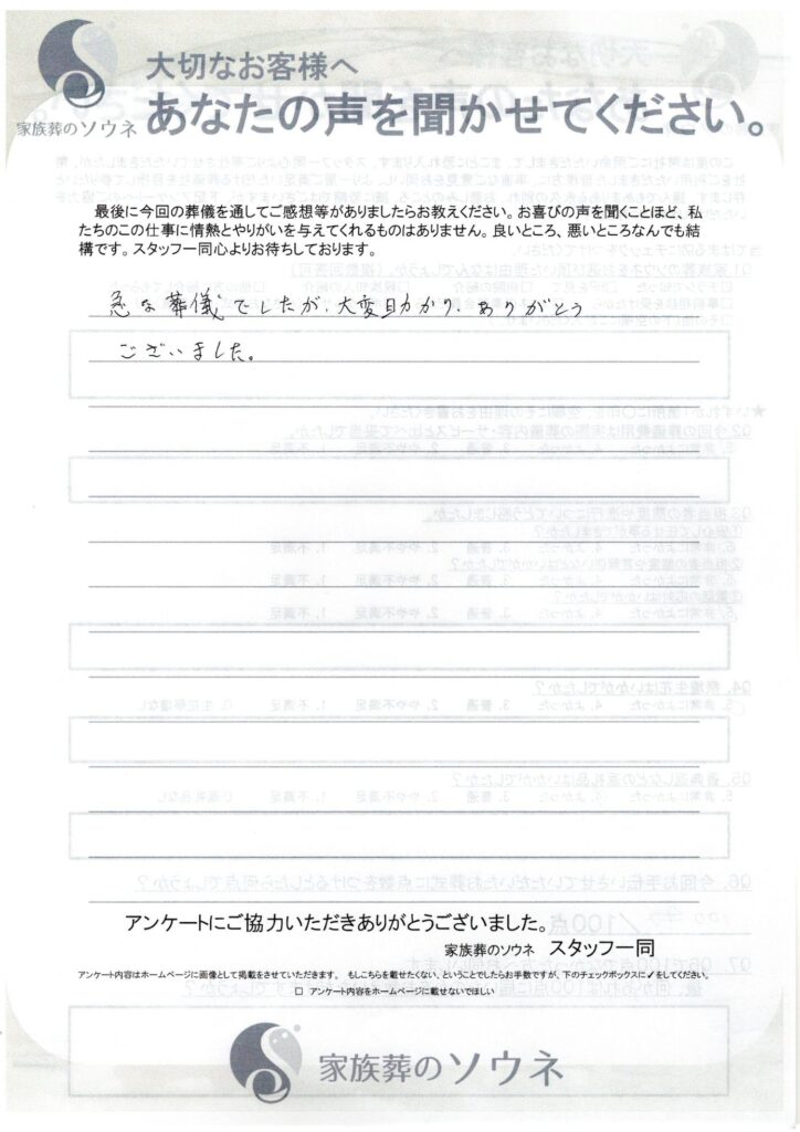 急な葬儀でしたが、大変助かり、ありがとうございました。