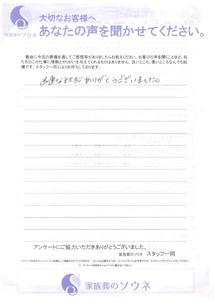 また、この度は大切な故人様とのお別れのお手伝いをさせていただき、ありがとうございました。