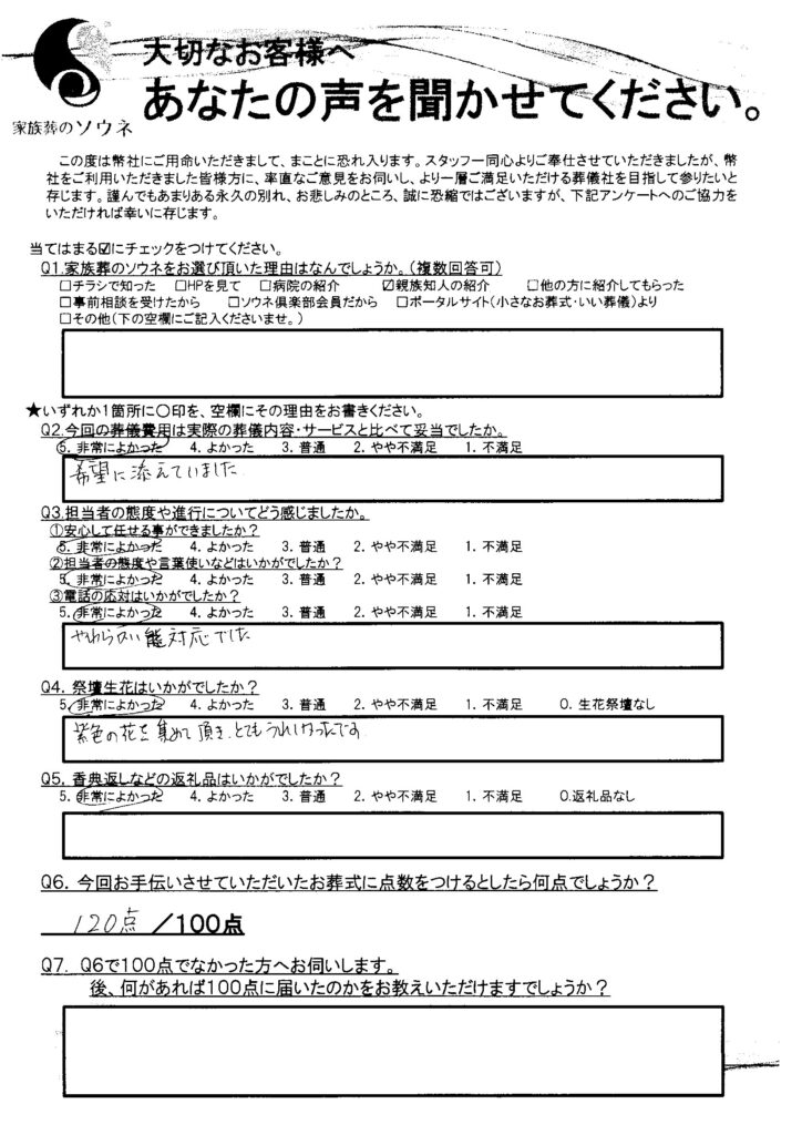 また、この度は大切な故人様とのお別れのお手伝いをさせていただき、ありがとうございました。