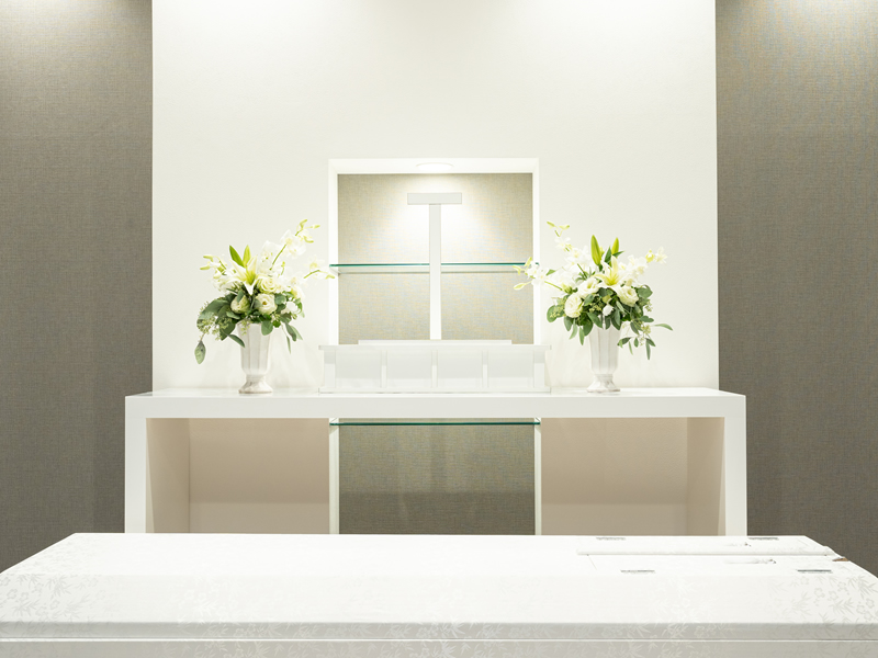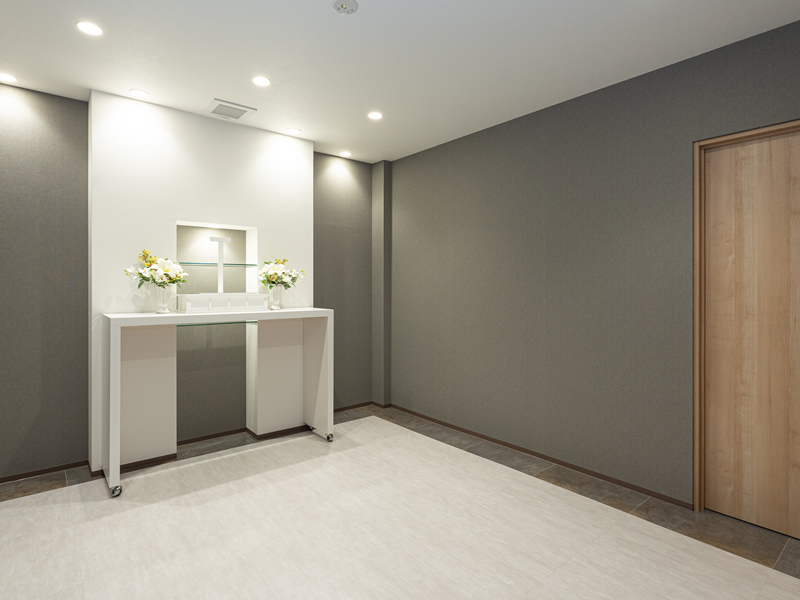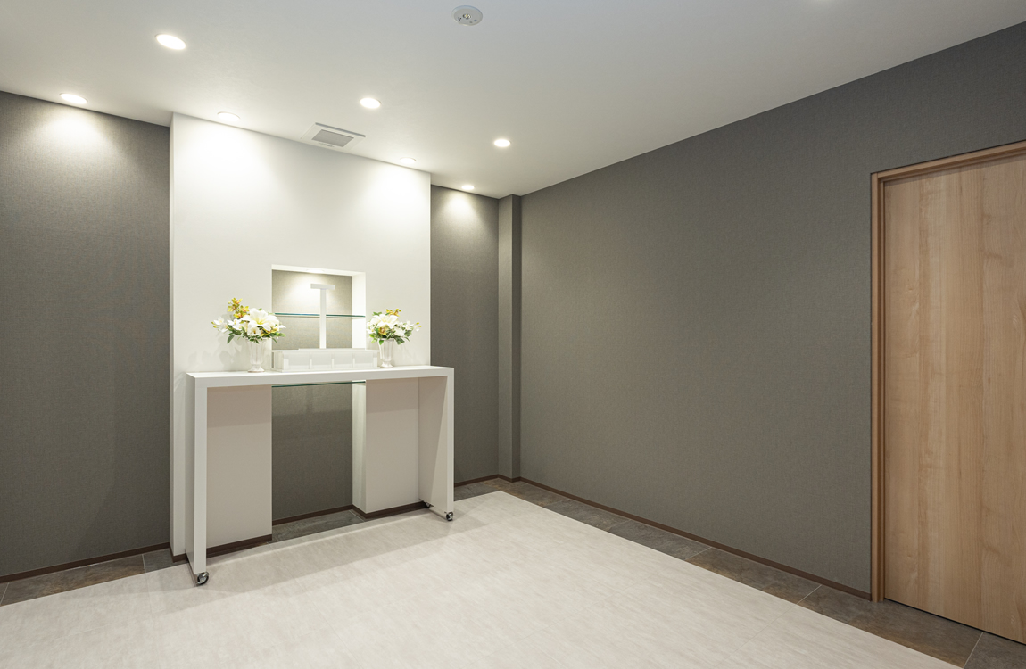 24時間、365日、お電話一本で、もしもの時はお出迎えに参ります。場所をご指定頂ければご自宅・病院等何処でもでもお迎え可能です。会館は1家族様貸切とさせていただきますので、万が一お式までお待ち頂く場合も別にきれいなご安置室をご用意しております。安心してご連絡ください。